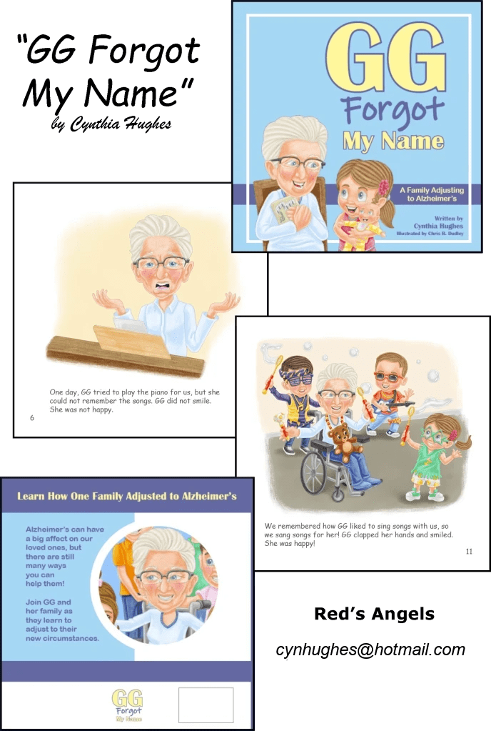 A heart-warming and valuable children’s book GG Forgot My Name by Cynthia Hughes teaches children how to care for family members living with Alzheimer’s disease . . . I loved the creative ideas the children came up with which they used to brighten GG’s life . . . they are practical and any child can use them to show care and support for family members with Alzheimer’s disease . . . the book excellently tackles a critical issue that many families are dealing with and it offers ways for parents or guardians to explain to their children what Alzheimer’s disease is and how to care for a loved one living with it.